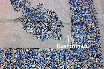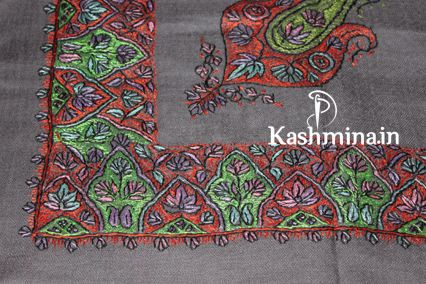 Teal and Grey Tone India Jamawar Replica Wool Shawl ....