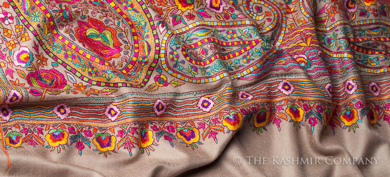 Taupe Grey Wool Blend Shawl Trimmed with Floral Lace ..... more